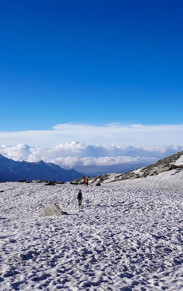 Spend time at the top before descending on the Yamunotri side — a steep technical descent.