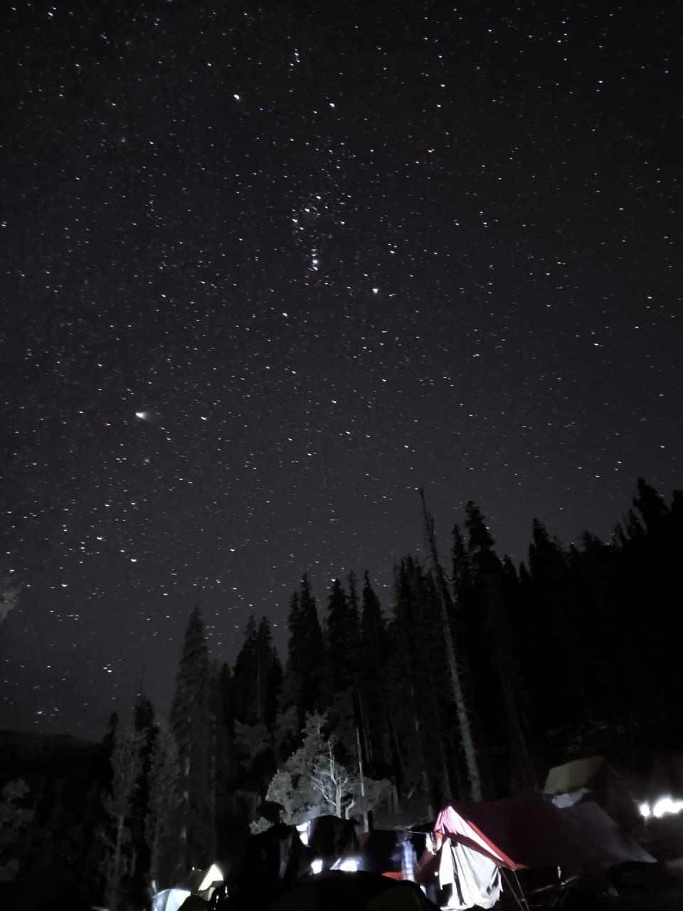 Trek through dense pine and maple forests, crossing small streams and wooden bridges. Stop at forest clearings for rest and panoramic views of Swargarohini peaks. Reach Juda Ka Talab, a serene alpine lake surrounded by forests and snow-covered meadows. Set up camp, enjoy a bonfire, and stargaze in the clear mountain sky.